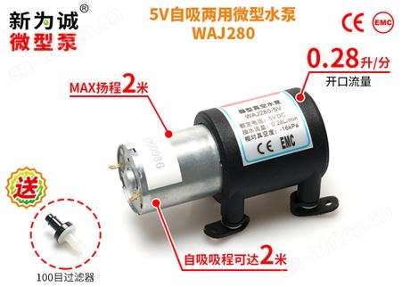 新为诚,品质微型泵专家!成都新为诚科技有限公司(原为诚电子机械),10余年来专注于微型水泵、微型真空泵气泵的生产批发销售,是国内少有同时兼顾微型水泵和微型真空泵的专业厂家,用心打造自有"新为诚"品牌。是调速微型水泵、微型高压水泵、自吸小型水泵、微型自吸水泵、交流微型水泵;无刷微型真空泵、调速微型气泵、调速微型采样气泵、微型活塞高压气泵、交流微型气泵等微型泵,及无刷微型泵调速器等相关配件的专业生产厂家。新为诚公司十几年来,锐意进取,已取得认证,形成近百个系列,几百种微型泵及相关产品的规模;产品已取得CE/EMC/MD/RoHS/CNAS等多项认证……多年来,新为诚成功为多家企业长期配套;产品广泛应用于环保、水处理、科研、气体采样、仪器仪表、化工分析、医疗医药、食品、生物工程、自动控制…… 等众多领域。遍布全国的行业设备、成...