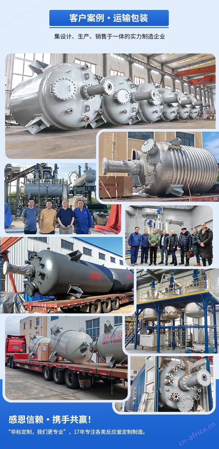设备主体与物料接触部分采用优质S31603不锈钢制造,具备耐腐蚀性,能够应对多种酸、碱及有机溶剂环境,确保物料纯净,防止交叉污染。承压部件采用Q345R低合金钢,提供了坚实的结构支撑与安全保障。独特的卧式结构设计是其显著特点,相比传统立式釜,极大地降低了物料装填、卸出及内部清洗的难度,尤其适用于处理高粘度流体、浆料或含有固体颗粒的介质,有效避免了物料在底部的沉积与残留。