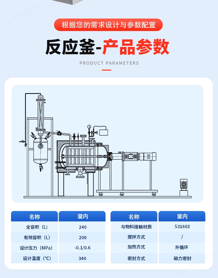 200L不锈钢卧式中试反应釜本设备是一款有效容积200L的卧式中试反应釜,主体采用S31603不锈钢。设计压力达-0.1/0.6 MPa,设计温度340℃,胜任从真空到正压的复杂反应条件。磁力密封与卧式结构,专为高效混合高粘度、含固物料而设计。该釜是实验室研发装备,能为制药、新材料等领域的工艺放大提供精确、可靠的数据与工艺验证。