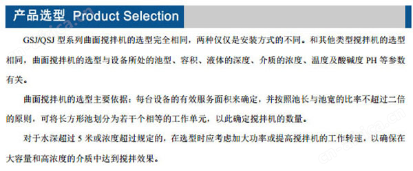 双曲面搅拌机整机由驱动装置和双曲面叶轮体及安装附件组成,为了满足用户不同工况条件下的使用,安装分为干式(也称立轴式)和潜水式两种。干式安装,将驱动装置固定在工作桥上,通过传动轴将动传至介质中的叶轮部件,它用于含固率高,水温高,含有磨蚀性的液体中,由于叶轮具有自动纠偏功能,运行较平稳,减速机噪音小于60分贝。潜水式安装,可免去桥架,采用潜水动力,利用设备自重定位,安装灵活方便,适用在水深较深,且水质稳定,不含磨蚀性的水体,水温不大于40℃,PH值6~9之间,其特点是无噪音,无视觉障碍。