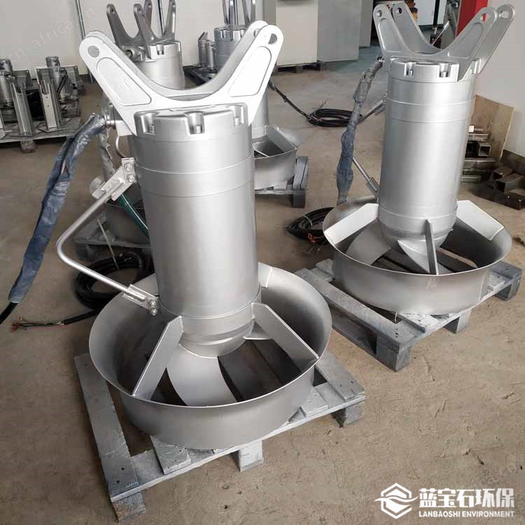高、中速搅拌机叶轮为后掠式三叶片,不锈钢材料,模具化成型,工装化制作,推力大、防缠绕、效率高。
