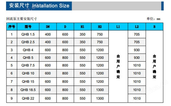 1、不锈钢水下混合液回流泵QHB系列由叶轮、潜水电机、导流罩、穿墙管、拍门、安装提升导杆、起吊钢绳、水下电缆、起吊架和手摇升降装置、角度转向装置、就地控制柜等组成。