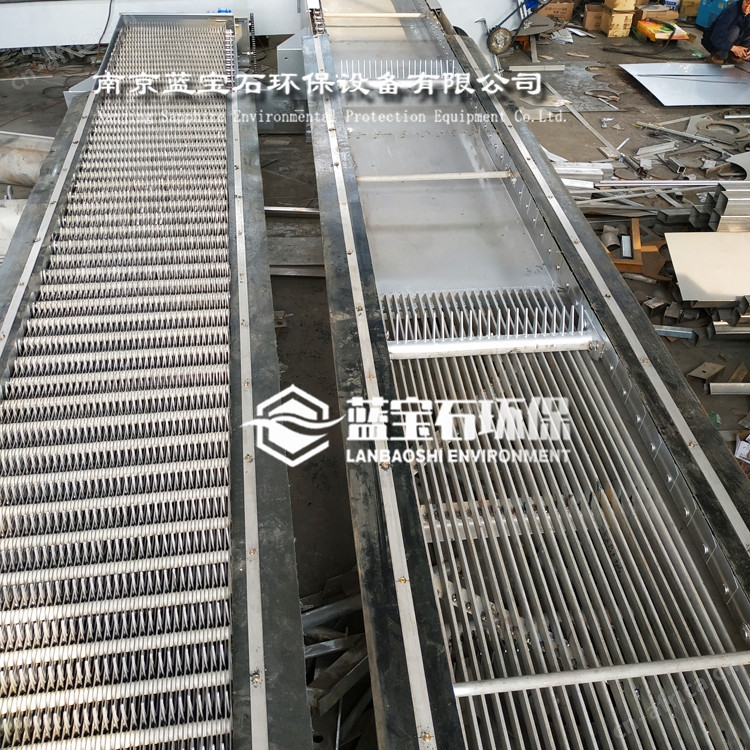 (2) 本机在主栅条前加上一道活动的副栅,活动副栅的间距与主栅条一致,活动副栅的栅渣由长耙齿捞取,有效防止污水中的栅渣从栅条底部串过和底部的污物的积滞。
