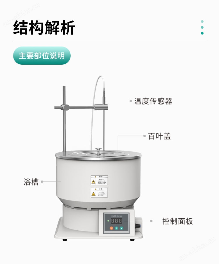 ●磁力搅拌机构带动槽内的搅拌子同步旋转,使浴槽内溶液旋转,受热均匀。