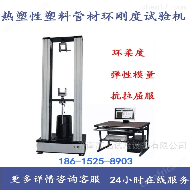 微机控制环刚度试验机适用于对塑料、玻璃钢、复合材料等非金属管材环形横截面刚度的力学性能测试,试验满足GB/T9647-2003试验方法及标准。能自动检测 出管材环形横截面的最大承载力值、破坏力值及最大变形量。可根据GB/T9647-2003标准自动求出管材环形横截面刚度值。环刚度试验机无污染、噪音低,效率高,具有比较宽的调速范围。适用于各种PE、PVC、PPR等管材环刚度环柔度等力学性能指标的测试,符合国家相关标准的要求。环刚度试验机广泛应用材料检验分析,是科研院校、大专院校、工矿企业、技术监督、商检仲裁等部门的理想测试设备