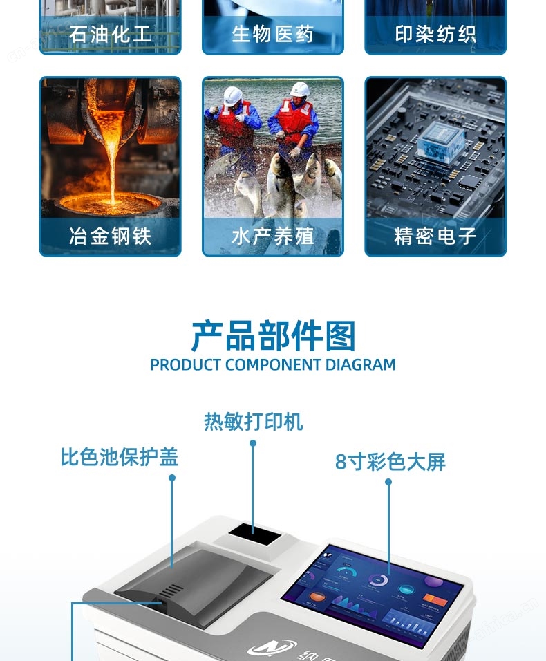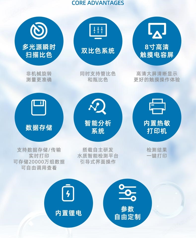 2、具备双电源系统,仪器内置锂电池,续航能力可达8小时;支持现场COD测定,灵活性高;