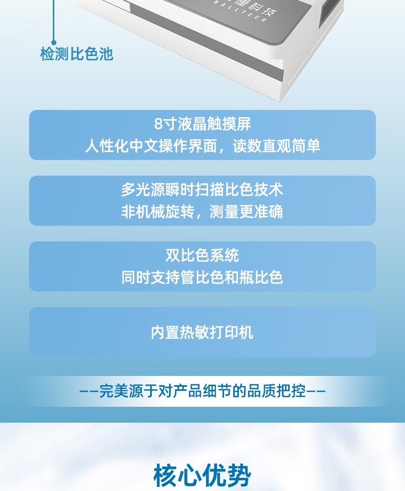 4、双比色系统,支持比色管及比色皿两种比色方式;主机管比色方式为多光源瞬时扫描比色;