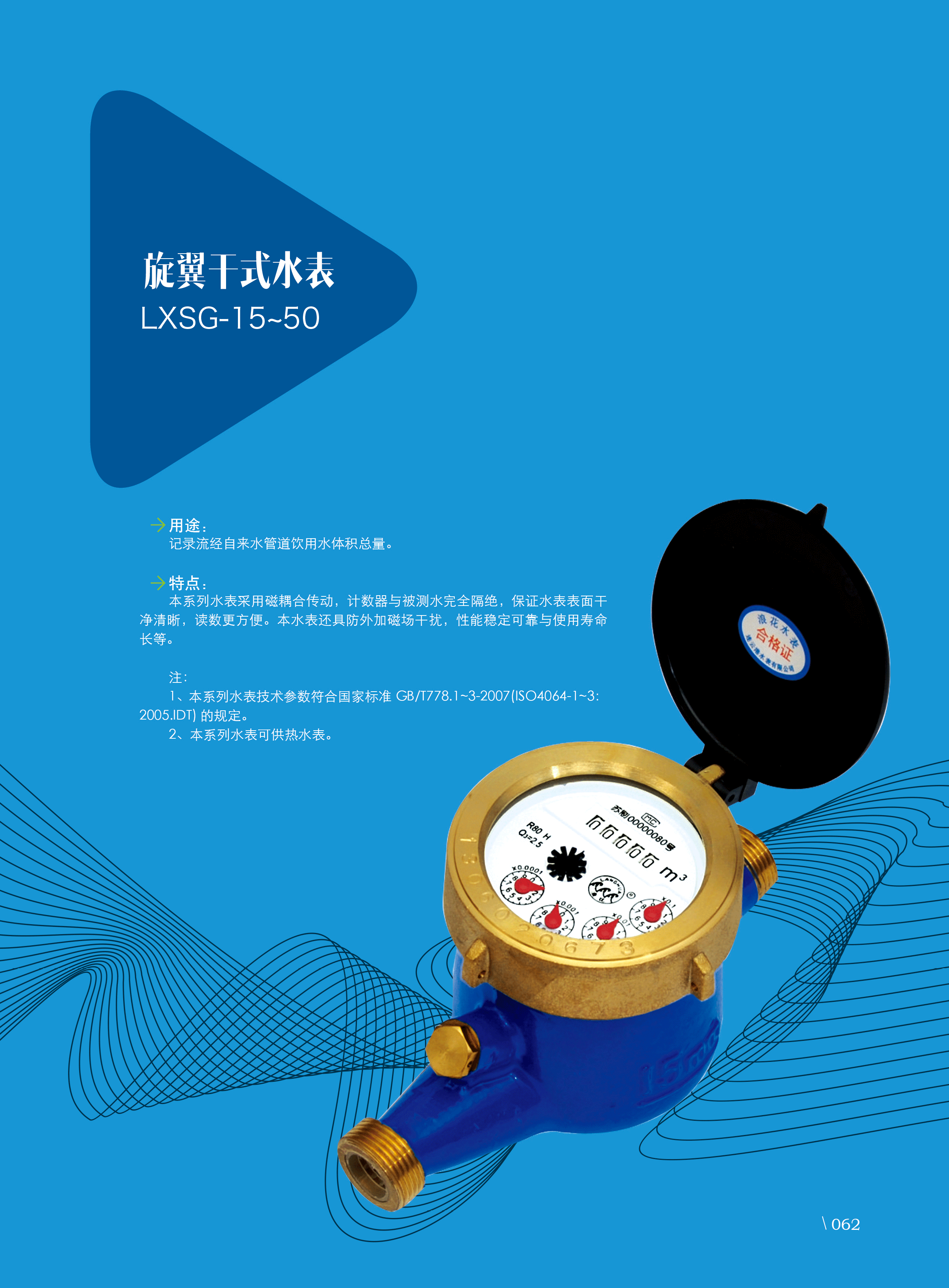 旋翼干式水表 用途:记录流经自来水管道饮用水体积总量。