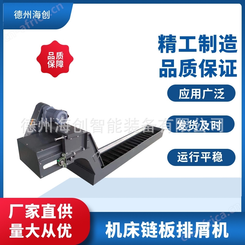 链板排屑机主要由链条、链板、链轮、驱动装置等组成。其工作原理是通过链条的传动,带动链板在排屑槽内运动,将切屑或其他废料推送至指定位置,从而实现排屑的目的。