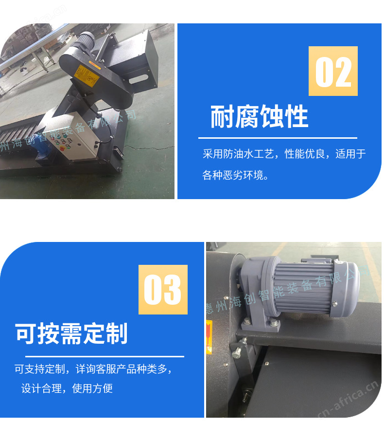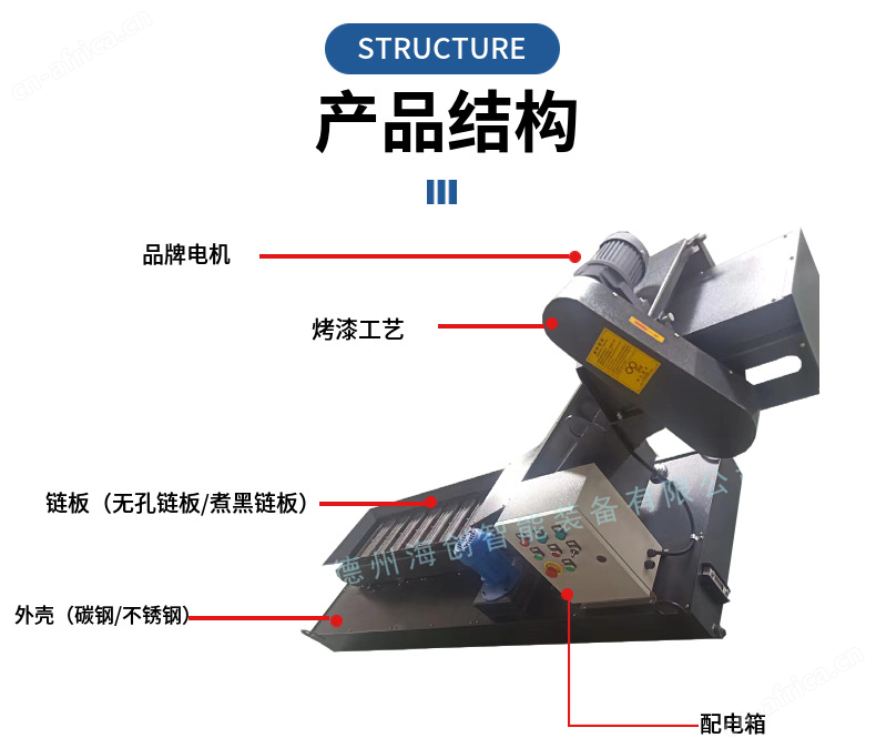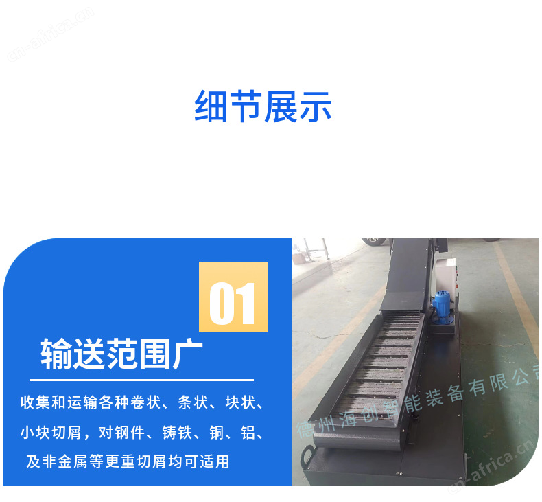输送效率高:能够快速、有效地将切屑排出,提高生产效率,输送速度选择范围大。