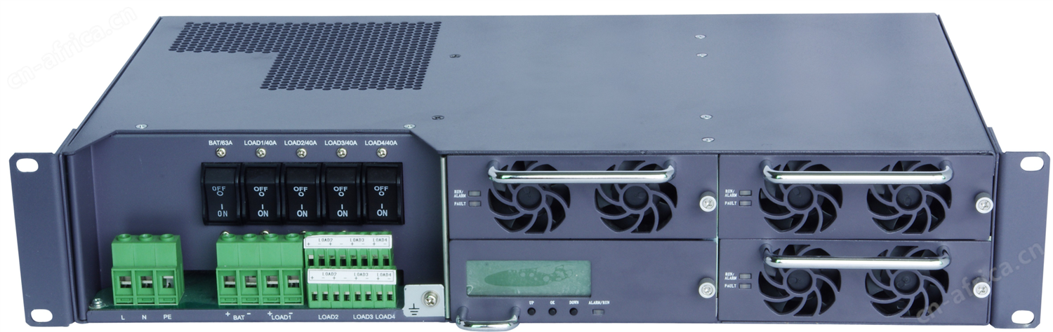 ◆完善的电池管理。有负载下电和电池低电压保护 (LVLD+LVBD)及二次下电功能,能实现温度补 偿、自动均浮充控制、自动调压、电池容量计算、 在线电池测试等功能。