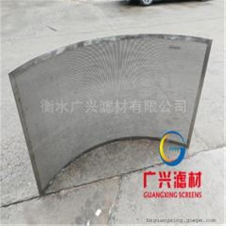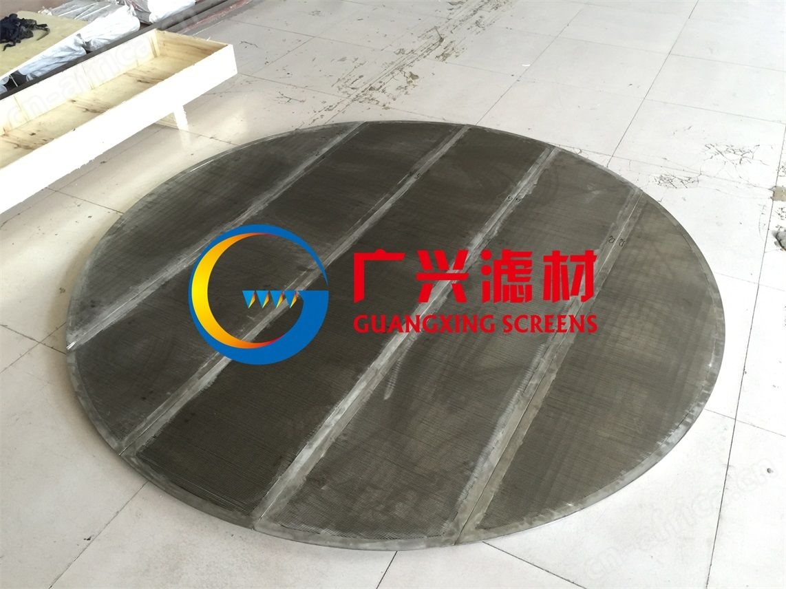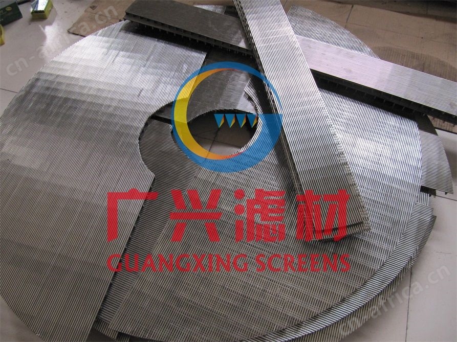 3、楔形丝筛板(细格栅),由不锈钢楔形丝和支撑条焊接组成的,广泛应用于细物料筛分、脱水、脱介的过程,是酿酒设备、糖化过程,环形油脂浸出器及污水处理设备中常用的过滤设备。