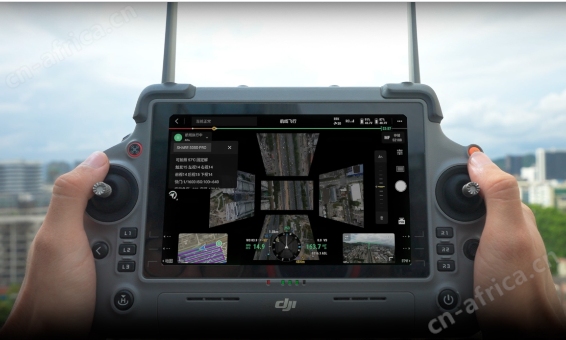 数据采集高效:适配 DJI Matrice 400,支持其 25 米 / 秒高速航测作业,可轻松获取高分辨率航摄影像。在 3 公分地面分辨率要求下,DJI Matrice 400 挂载该相机单日作业面积较上一代解决方案大幅提升。同时行业五路实时高清统一图传,支持任意单视角和五路视角的动态码流图传显示,让作业观测更全面,能更高效地采集数字孪生所需的海量数据。