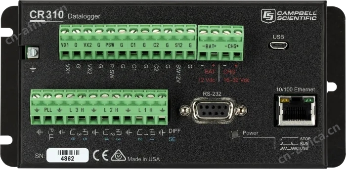与CR300系列数据采集器相比,CR310数据采集器具有以太网口和可拆卸端子连接器。