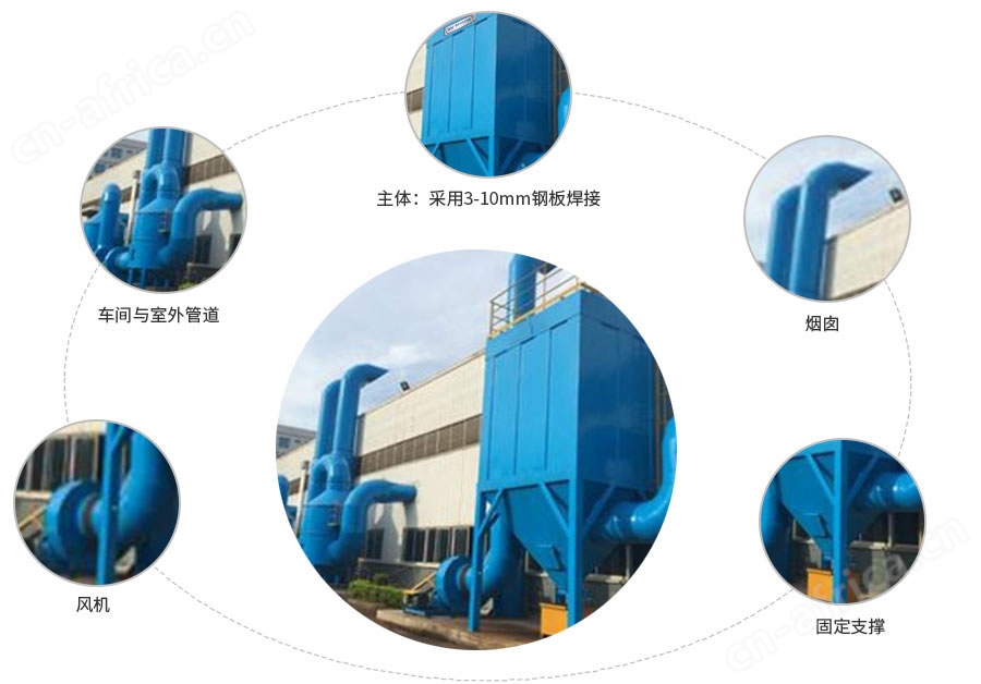 用途: 1)使粉尘等污染排放符合国家环保标准 2)噪音低、故障低、维修费用低 3)外表美观、防锈