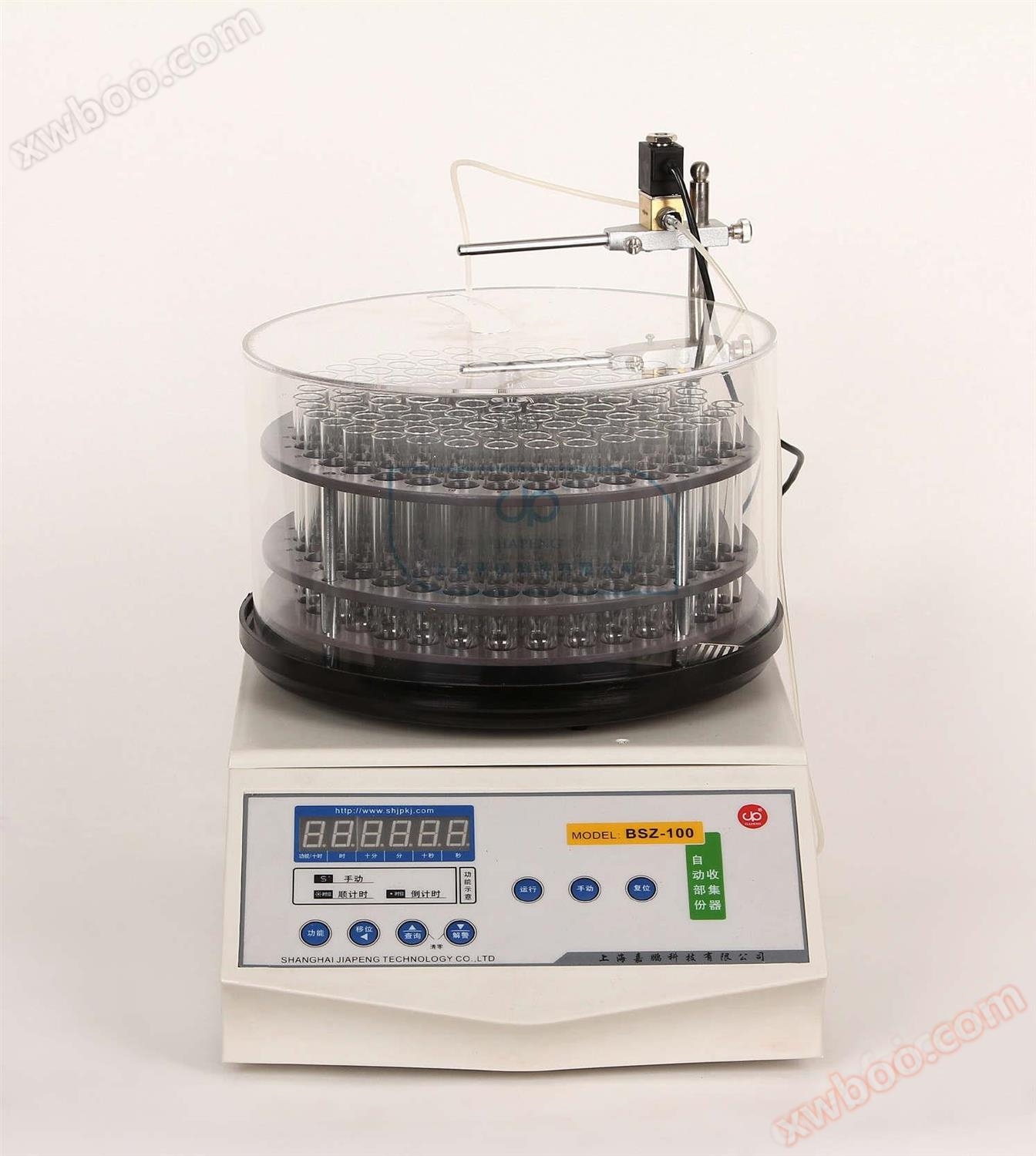 上海嘉鹏科技有限公司独立研发生产的自动部分收集器也叫组分收集器、馏分收集器,是生物化学实验和生物药品生产的基本设备之,用于自动定量收集层析柱中流出的液滴,达到把不同活性组分装到不同试管中去的目的。嘉鹏自动部分收集器是在利用色谱法分离些混合物质时,把从层析管离析出的溶液,按定量自动分取的装置,适用于科研、医疗、等院校实验室等部门进行液相色谱层分析实验,本仪器能自动分量收集层析液,从而代替手工操作,提工作效率,与嘉鹏核酸蛋白检测仪/紫外检测仪、恒流泵、层析柱以及数据工作站组成套液相色谱分离层析系统。该系列自动部分收集器采用全新微电脑芯片,能自动定时收集、计滴收集、记录峰采样收集层析液,实现自动采样收集,提收集质量和工作效率,深受科研院校及厂矿企业从事科研生产的理想仪器,得到清华大学,北京大学,复旦大学等全等院校的广泛应用。