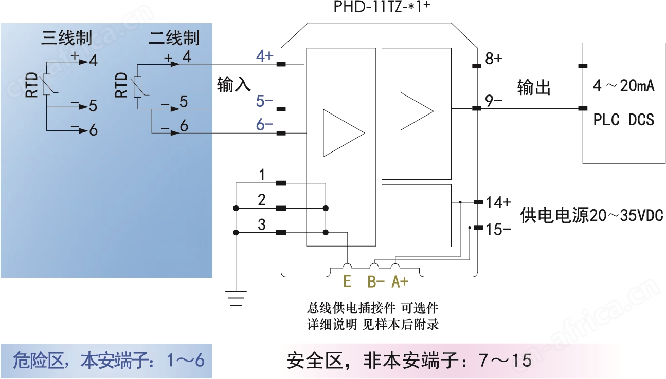 电涌保护型热电阻输入隔离栅,可将危险区域内的热电阻(RTD)信号转换为4~20mA电流信号,输出到安全区。可智能组态,热电阻的实际量程范围可通过计算机软件进行设定。具有断线报警功能和超出量程范围报警功能。