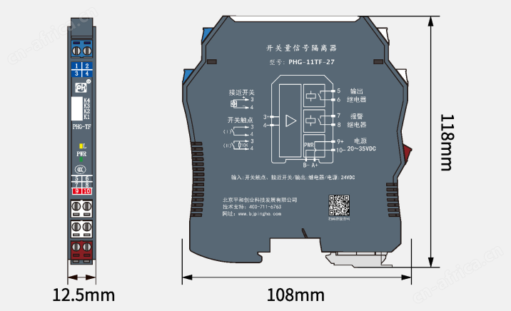 开关量输入继电器输出信号隔离器, 将开关触点或接近开关的输入信号, 通过隔离转换为继电器输出。线路故障检测通过单独的继电器输出,并在模块顶部LED灯显示。模块的开关用来选择通道的相位和是否需要线路故障检测功能。