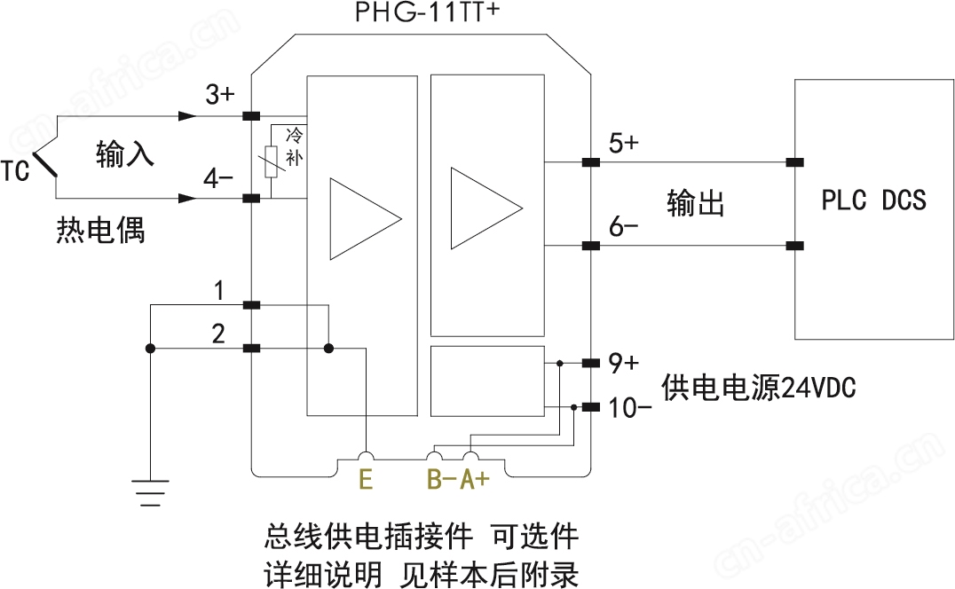 电涌保护型热电偶输入温度变送器,可将热电偶(TC)发出的直流信号隔离转换为直流信号,此产品内置冷端补偿功能,可智能组态,热电偶的实际量程范围可通过计算机软件进行设定。具有断线报警功能和超出量程范围报警功能。