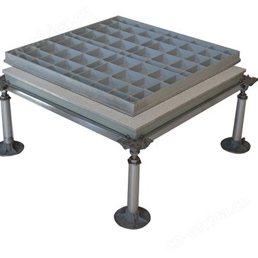 铝合金防静电地板系统有地板、横梁、支座组成。横梁和自身高度可调的支座用螺钉连结成稳固的下部支承系统,地板镶嵌入横梁围成的方格内。