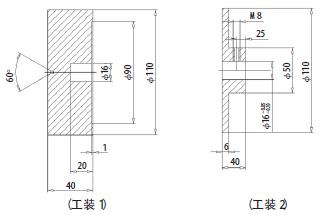 把工装2的基准孔与零件配合,用M8顶丝顶住,这样使加工精度提高到0.01~0.02mm,动平衡有了较大的改善。