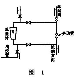 6 安装在管路上的流量计需要进行清洗时,可装上清洗管路,推荐的清洗流量计的管路如图1所示.