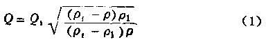 2 当流量计工作介质的粘度和刻度介质的粘度相近而密度不同时,流量修正公式如下: