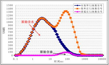 油信号:在原始含油饱和度的情况下,岩石孔隙中可能还存在原油或其他油类物质。通过核磁共振信号中的油峰(oil peak),可以检测到样品中的油的存在和分布。分析油信号的强度和形态,可以确定样品中的含油饱和度。