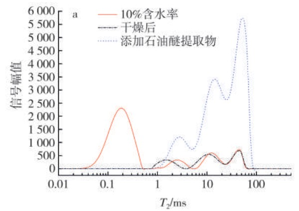 干燥后与添加 20%石油醚提取物的烟丝T2反演谱图
