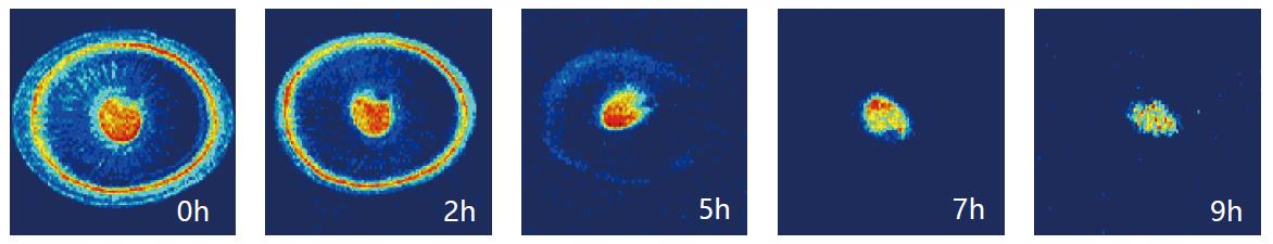 利用核磁共振技术可以在食品样品中制作磁共振图像,该图像可以显示水分分布情况。通过分析这些图像,可同时获取样品在时域和空间上的信息,可获得样品整体的不同状态水分的弛豫时间分布及内部任意层面的图像,方便食品样品的内部结构特性。