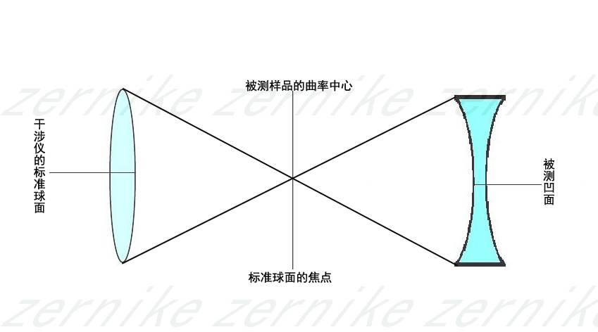 对于被测样品为凹球面的情况,干涉仪标准球面镜头的口径并没有特定限制要求,但标准球面的焦距必须等于或小于样品被测面的焦距。只有在满足这个条件时,光束才能覆盖(取样)测量区域,从而进行全口径的测量。