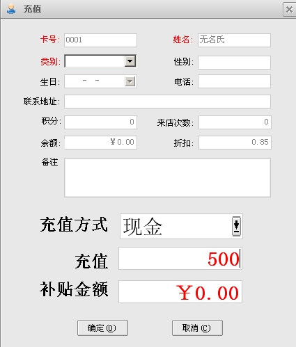 折扣:此类会员卡的折扣。1为不打折,0为消费。0.85为85折