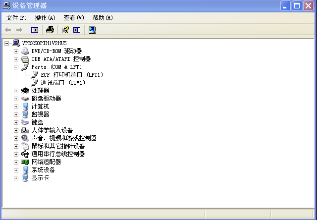 如果只有单台消费机,而且可以确定线路无问题时,将232通讯线直接连至消费机的232通讯端口(上面一个USB插座),如可通讯,则可同时排除软件设置以及电脑串口问题,这时,需将消费机返厂维修;如不能通讯,首先要确定软件设置是否正确,点击‘我的电脑’,右键‘属性’,打开‘设备管理器’如图一所示