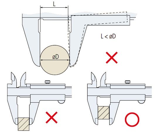 卡尺的读数轴和测量轴因不同轴而不符合阿贝原理,所以在使用卡尺时,用量爪的根部或爪尖进行测量,会存在加大测量误差的危险。测量时需注意被测工件尽可能地接近尺身部分(读数轴)。