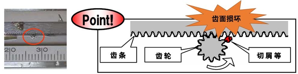 如果切屑或灰尘等异物侵入了尺架内部,在这种状态下强行滑动的话,可能会损坏尺架并导致精度和零点出现故障。所以一定要小心使用哦!