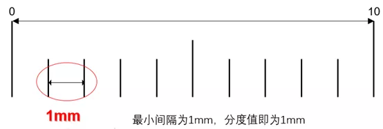 以图片标尺为例,分度值是指两条线之间的*小间隔,即为1mm。*:引自JJF1001-2001 通用计量术语及定义。