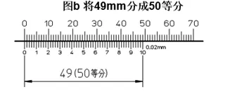 图a和图b都利用游标尺将主尺的*小间隔读数从0.1mm提升到了0.05mm或0.02mm,读数更精确。