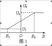 输出电压与外加磁场强度呈线性关系,如图3所示,可见,在B1~B2的磁感应强度范围内有较好的线性度,磁感应强度超出此范围时则呈现饱和状态。