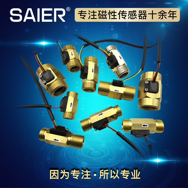 一﹑赛盛尔霍尔水流量传感器输出脉冲信号(Hz),为高﹑低电平的脉冲信号,DC5V时,高电平为4.3V以上,低电平为0.5V以下,高﹑低电平信号为一种电压信号;流量越大脉冲频率越大,流量越小脉冲频率越小,小到低于启动流量就没有脉冲频率输出;开关量信号是指通断信号,具体为0/1(0为低电平,1为高电平)信号输出,这种信号容易处理,能直接接入中间继电器或交流接触器,甚至直接接入DC36V以下的低电压线路进行控制;