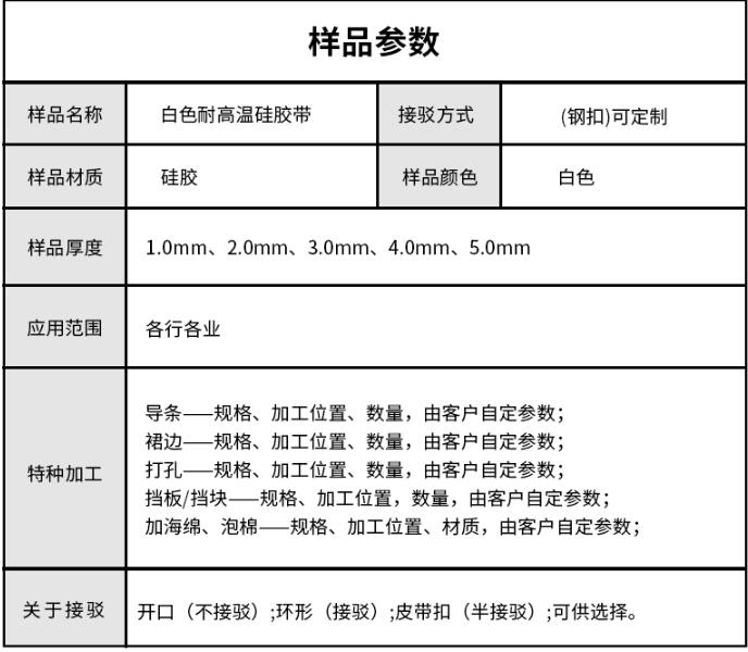 导读:硅胶工业皮带是擎川主打产品之一,,硅胶具有耐高温的材质,而且它没有气味,对人体也不产生有毒作用,所以硅胶工业皮带也就成了很多需要耐高温行业客户的青睐!今天我们就来介绍三款擎川硅胶工业皮带的样品!