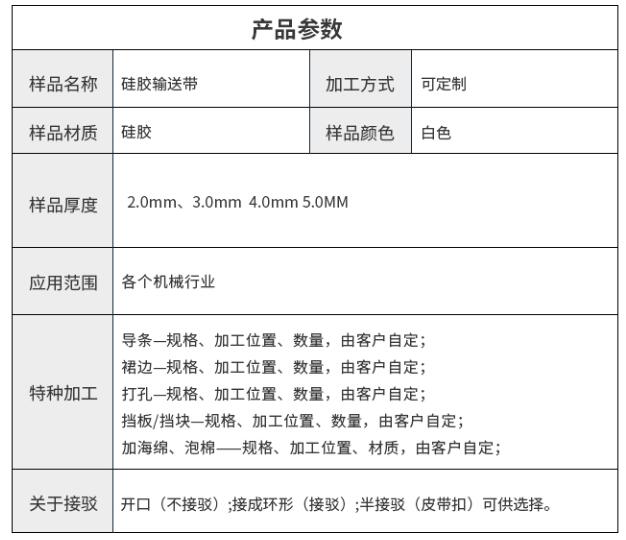 以上就是擎川EVERLA给大家分享的“擎川三款硅胶工业皮带定制样品简介”相关信息,希望通过介绍,能对大家有所帮助,擎川输送带厂家15年专注于食品输送带、PVC输送带、PU输送带、PU同步带、特氟龙输送带、尼龙片基带研制生产,为食品、医药、日化领域提供一站式输送带解决方案。如果您有输送带的采购需求,欢迎