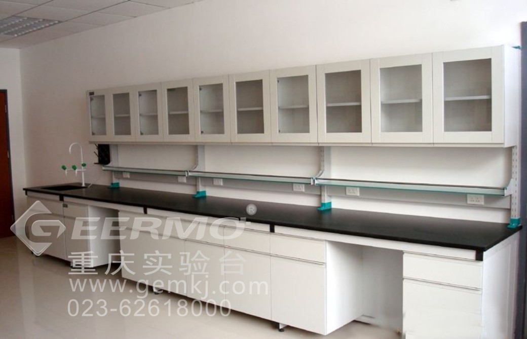 柜体主框架采用优质矩形钢管(40*60)焊接而成,壁厚为1.5mm,柜体钢管作为承重材料,静态承重超过300kg/m,表面经酸洗磷化,静电粉末喷涂高温烘烤固化,保证架体的耐蚀性,实验台下的柜体采用下托式结构,可以独立拆卸,便于维修,试剂架采用钢支架结构,可以很好地满足各种管线的增加和维护,拆卸组装非常方便,并且占地空间小,保证实验台有更大的工作空间。