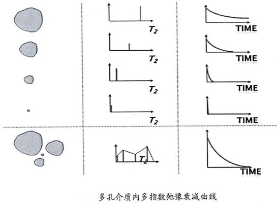 低场核磁共振技术在常规岩心分析中的应用解决方案【石油能源应用弹】 | | | 岩心分析是认识油气层地质特征的必要手段,岩石作为一种多孔介质材料,其内部的孔隙结构、孔内分子的运动状态、反应过程等现象以及现象之间的相互关系是岩心分析研究的重要课题。近年来,低场核磁共振岩心分析技术已经成为快速测量岩石物性参数的重要手段,其适合于实验室研究和油田现场应用,受到石油行业的广泛重视,应用领域日益广泛。 | | | 基本原理: 低场核磁共振技术利用油气或者水中的氢原子核在磁场中具有共振并能产生信号的特性来探测油、气、水及其分布和岩石物性参数。岩石中,不同大小的孔隙喉道构成岩石孔隙,弛豫时间显示的是孔隙大小的特征。因此T2谱显示了岩石的孔径大小分布,孔隙的尺寸越大,对应的弛豫时间越长,T2分布曲线越靠右侧;孔隙尺寸越小,对应的弛豫时间越短,T2分布曲线越靠近左侧。 | | |  | | | 与其他方法对比 相比气体吸附法、压汞法、气体孔隙度法等方法,低场核磁法具有快速、无损、绿色等诸多优势。 | | | 应用方向 1、岩心孔、渗、饱测定 2、含油、含水饱和度 3、润湿性的测定 4、岩心成像 5、钻井液含油含水率分析 6、岩石冻融损失机理研究 7、三轴压缩损伤力学性能研究 8、岩心高温高压驱替实验 …… | | 测试方法 | 优点 | 缺点 | | 气体吸附法 | 1、微、中孔表征较为准确,0.4nm-50nm 2、BET多分子层吸附理论接近实际吸附状态,公式较为准确 3、选择相应计算原理可分别描述不同孔径 | 1、无法表征大孔的孔隙分布和结构特征 2、测试时间久 3、测试结果受所选模型影响,准确度差异大 4、孔隙分布测定中无法区分喉道与孔隙本身 | | 核磁共振法 | 1、快速、无损测试、可测2nm-1μm的孔径 2、操作简单,应用普遍 3、整个孔隙尺度内表征都相对准确 4、可获得较为准确的孔隙结构图像 | 顺磁性物质对信号的影响较大 | | 压汞法 | 1、测试速度快,原理、操作相对简单 2、汞密度大,易于进入岩样孔隙中 3、可测3nm-400μm的孔径 | 1、纳米级孔隙测试误差大 2、高压汞可造成人工裂隙,影响测量准确度,且汞具有毒性 3、测量的孔隙开口尺寸,孔吼存在使得测量孔径分布偏离 | | | | |