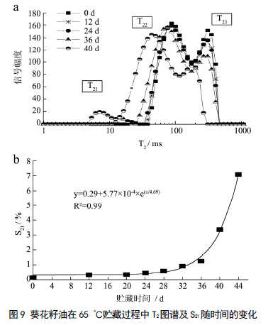 葵花籽油热氧化过程的低场核磁共振 弛豫特性研究 | | | 背景简介 食用油在加工和贮藏过程中会发生一系列的化学反应,其中,油脂的热氧化反应对油脂及含油食品的 稳定性影响,产生的氧化产物,破坏油脂营养风味、影响人体健康。因此,油脂热氧化反应机理及相关检测方法一直是油脂研究领域的热点。 低场核磁共振是一种非常有潜力的油脂快速检测新技术,具有快速、无损、样品需要量少等特点,在油脂分析中得到了一定应用,已有研究对油脂的T2 弛豫特性进行了报道。 葵花籽油贮藏氧化过程的低场核磁共振弛豫特性 葵花籽油在65 ℃贮藏过程中低场核磁共振 检测得到T2 图谱如图9a 所示,随贮藏时间增加T2 整体有逐渐左移趋势,进一步分析S21 的变化如图9b 所示,葵花 籽油的S21 随贮藏时间呈良好的指数关系(R2=0.99)。这是由于,T2 特征峰一方面反映氧化产物中区别于甘油三酯成分的一类氧化产物的形成及积累,随着贮藏时间的延长,具有类似T21 的化合物含量增加,从而使其低场核磁共振 的信号响应增加,导致T2 图谱中相 应的峰面积(S21)增加。 结合葵花籽油热氧化过程氧化产物的1H-NMR指纹图谱分析技术对葵花籽油热氧化过程中典型氧化产物的变化规律进行研 究,分析各氧化产物与S21 间的相关性,建立S21 与相关氧化产物的量效关系,为进一步解释低场核磁共振 检测油脂品质的机理提供基础数据支持。 | | 参考文献:“葵花籽油热氧化过程的1H-NMR 指纹图谱与 LF-NMR 弛豫特性研究” 《现代食品科技》2014, Vol.30, No.8 | | |