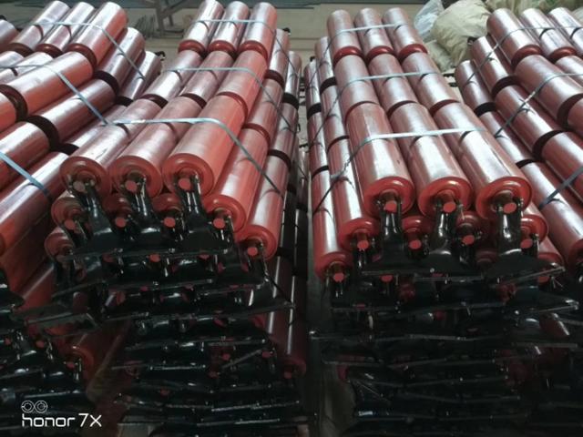 皮带机托辊种类多,数量大。它占了一台皮带输送机总成本的35%,能够减少皮带机运行70%以上的阻力,因此托辊的质量尤为重要。