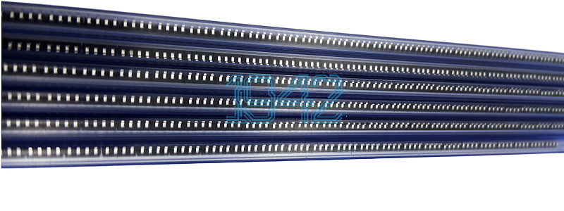 管式(Tube)包装主要用于包装矩形、片式元件和小型SMD以及某些异形元件,如SOP、SOJ、PLCC等集成电路,适合于品种多、批量小的产品。棒式包装形状为一根长管,内腔为矩形的,包装矩形元件;内腔为异型的,用于异形元器件的包装。(如下图)