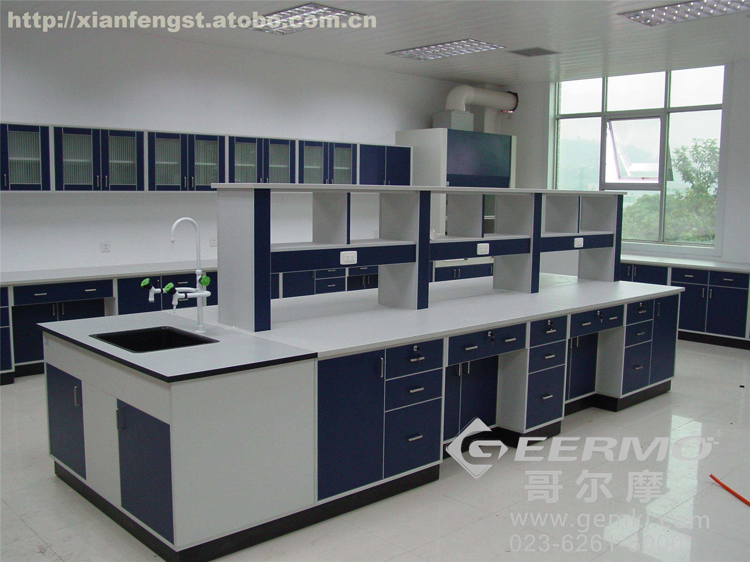 3、洗涤槽:采用PP材料盆,台面采用国际品牌实芯理化板,抗化学腐蚀、耐温、防刻刮。箱体木质基材采用优质中密度板,具有防水、防火、防蛀等性能。