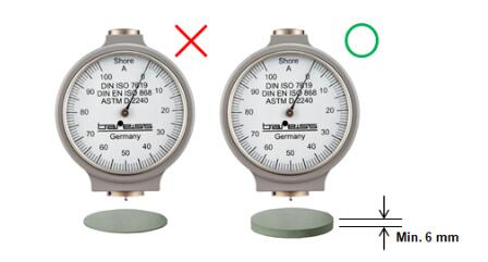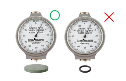 手持硬度计常被误用在橡胶薄件,例如O行圈并无足够的测量面积和肉厚。此应用是不正确的也会造成错误的测值。