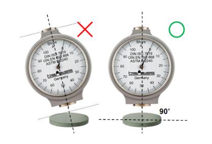 在操作上也有许多要注意的地方,例如当测量时手必须尽量紧握硬度计并且成90度垂直的下压角度,一气呵成直到探针押入样品中。