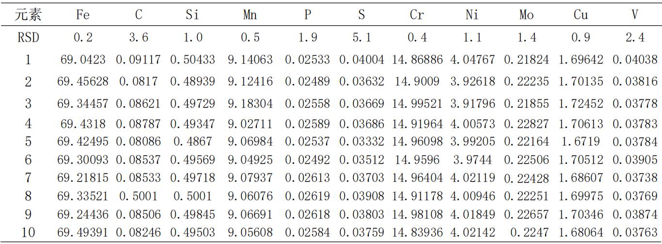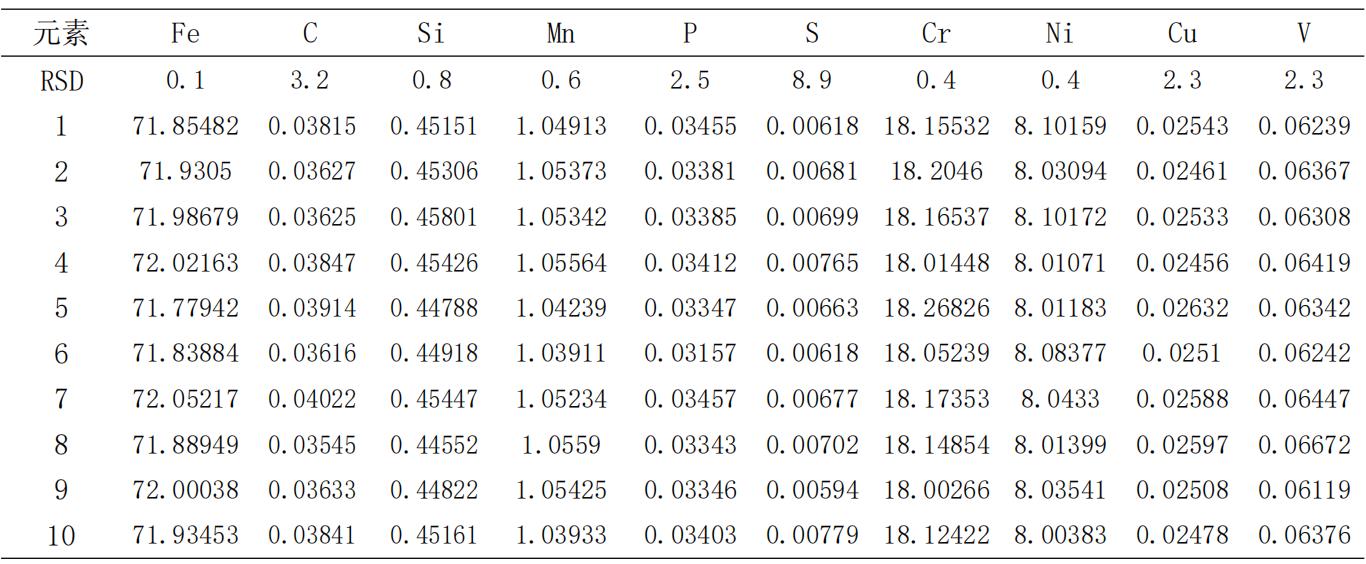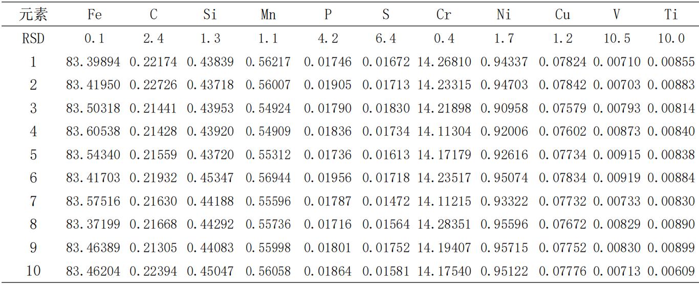 可以快速检测出不锈钢杂质元素的含量,满足 GB/T 11170 国标对不锈钢的分析要求。该方法不涉及酸等危